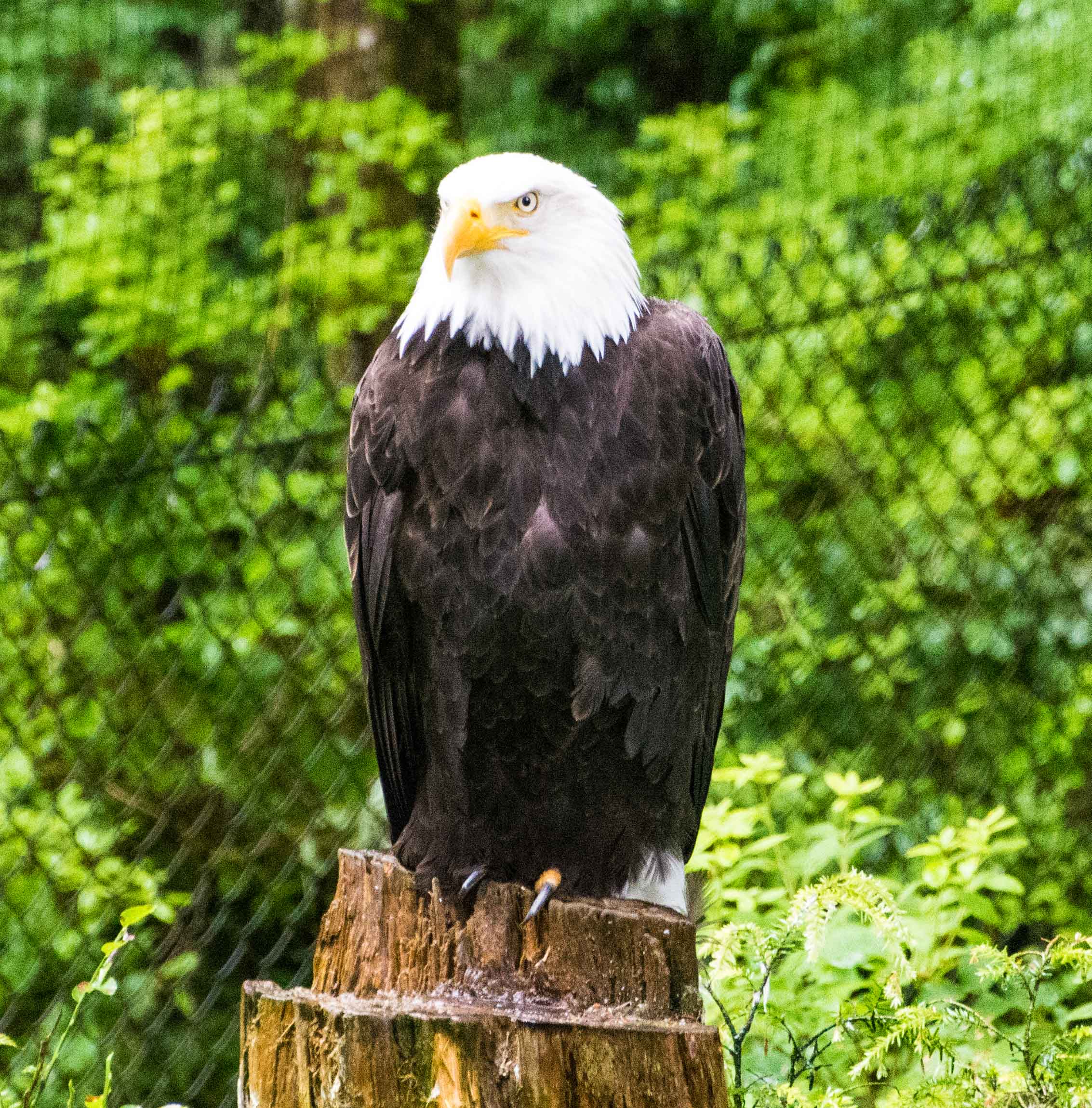 We then found our way back to the Visitor Center, and took a bus from there to the Alaska Raptor Rehabilitation Center. They have a variety of Raptors there. These birds are either recuperating and awaiting reintroduction into the wild, or, if they would not survive reintro-duction, they become part of the birds for display and education. In addition to the aviary spaces for the birds on permanent visit, there are two areas for the recuperating birds to practice flying again. Each bird in the facility has its story. Probably the most unusual is a bird that had gotten hit by a Fed Ex plane. It was more than a bit shell shocked, and it lost the feathers on one side but physically, it was not hurt. Amazing! After growing its feathers back, it was reintroduced into the wild.