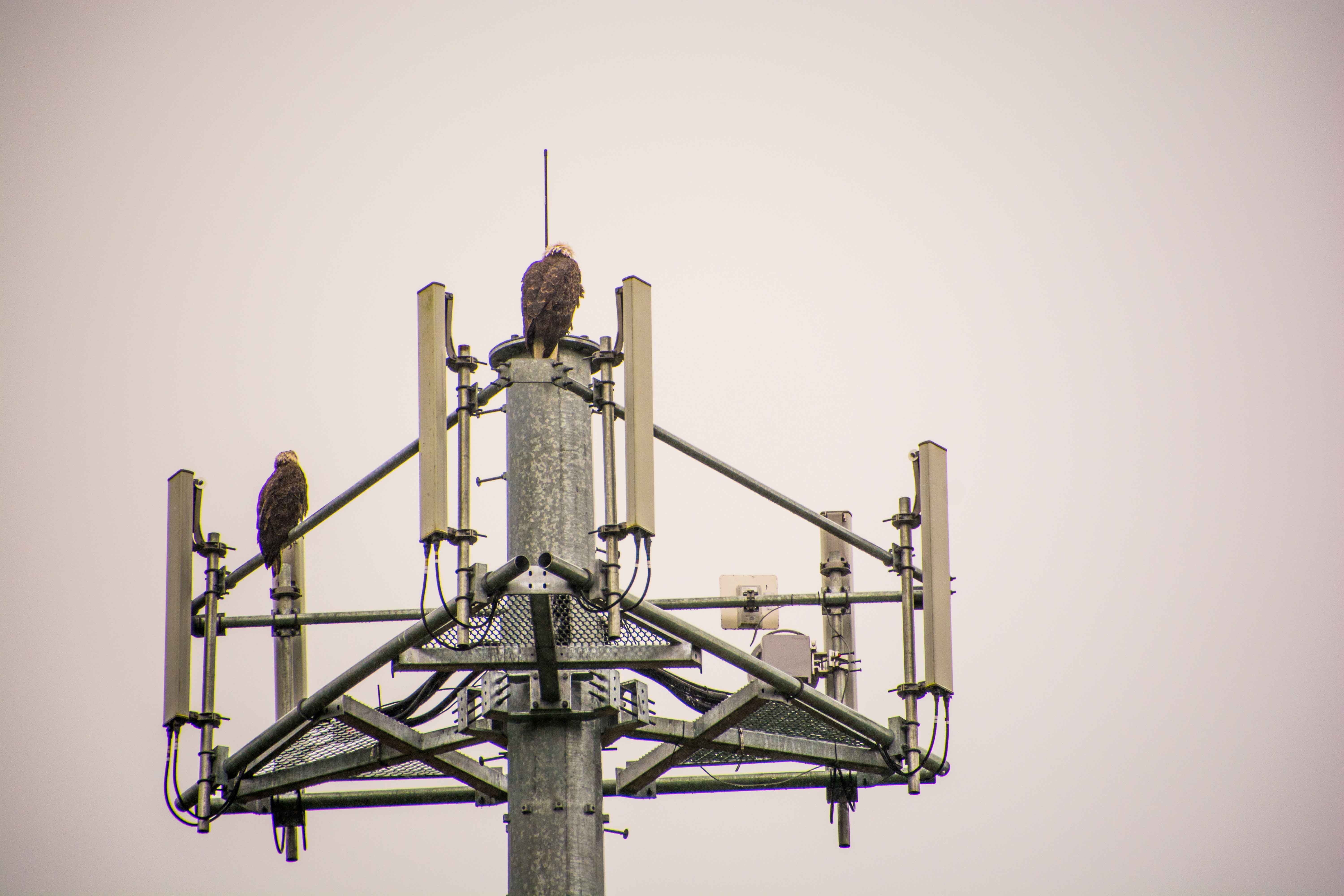 In the parking lot of the Raptor Center is a cell tower. Perhaps not too surprisingly, it was a resting place for these Bald Eagles