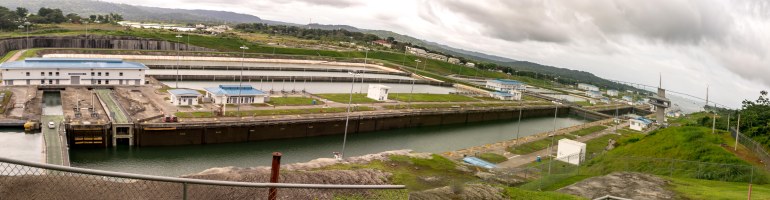 Above you see the lock bays emptying into the Caribbean, each bay slightly lower as your vision moves from left to right.