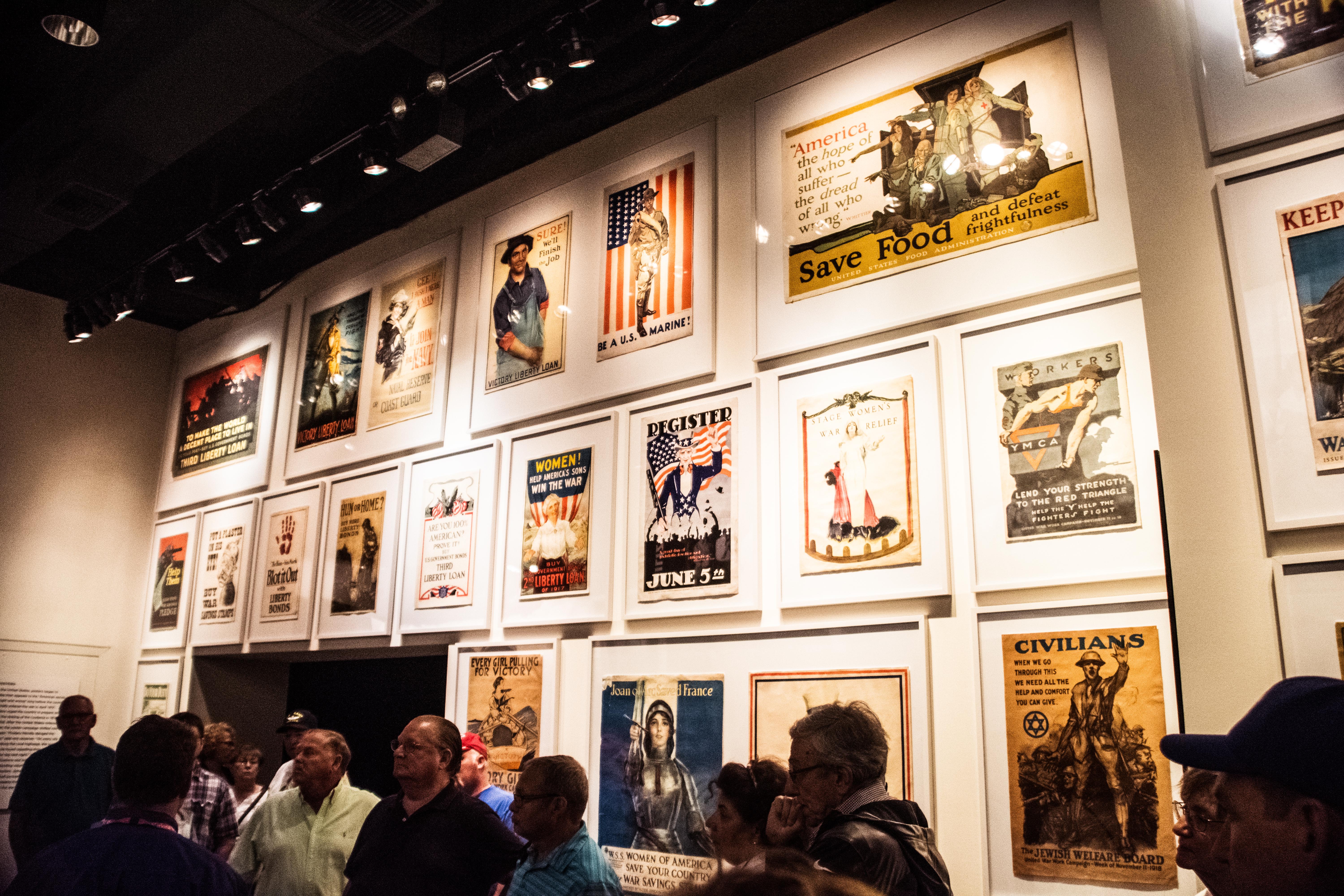 At the base of the tower is the Memory Hall, entirely devoted to the display of a WWI timeline / compendium, developed in 1919-1920 to tour Europe. It circulated for awhile, and eventually made its way to become part of the WWI Liberty Memorial Museum built in Kansas City from 1920 to 1926.