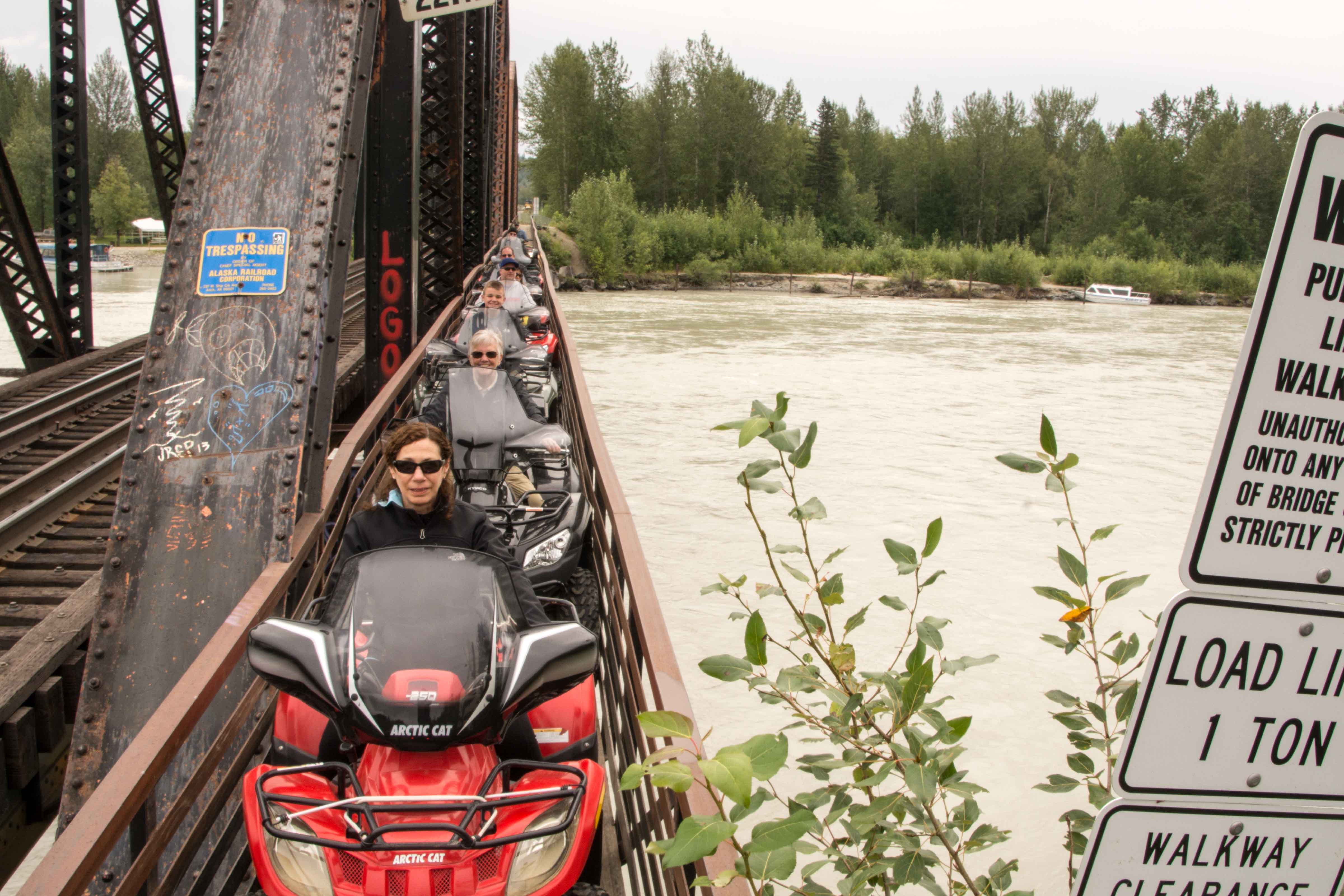 There is no platform for the train, only a set of aluminum steps by the side of the track. This whistle stop is not far from Portage where we got off. On the shoreline, there is a set of purpose-built steps laid down to help people get off the rafts. After each raft unloads, it is disassembled (the oars taken off and the aluminum and wood frame guide’s seat is detached), and the rafts are piled up on the side of the unloading area. We await the train, which comes up along the track where we are standing around shortly after the last raft is unloaded, stopping at just the right point to allow us to get back on board. The train takes us back to Portage, and from there, we got on a bus which in about an hour brought us back to the train station we had started from in Anchorage. Albert and Marlene are there waiting for us, and they bring us back to the hotel. After we have a chance to change our clothes and warm up a bit, we all go out to Nova’s, a restaurant nearby where we get some exceptional Italian food, and a chance to celebrate the great adventures we have had.