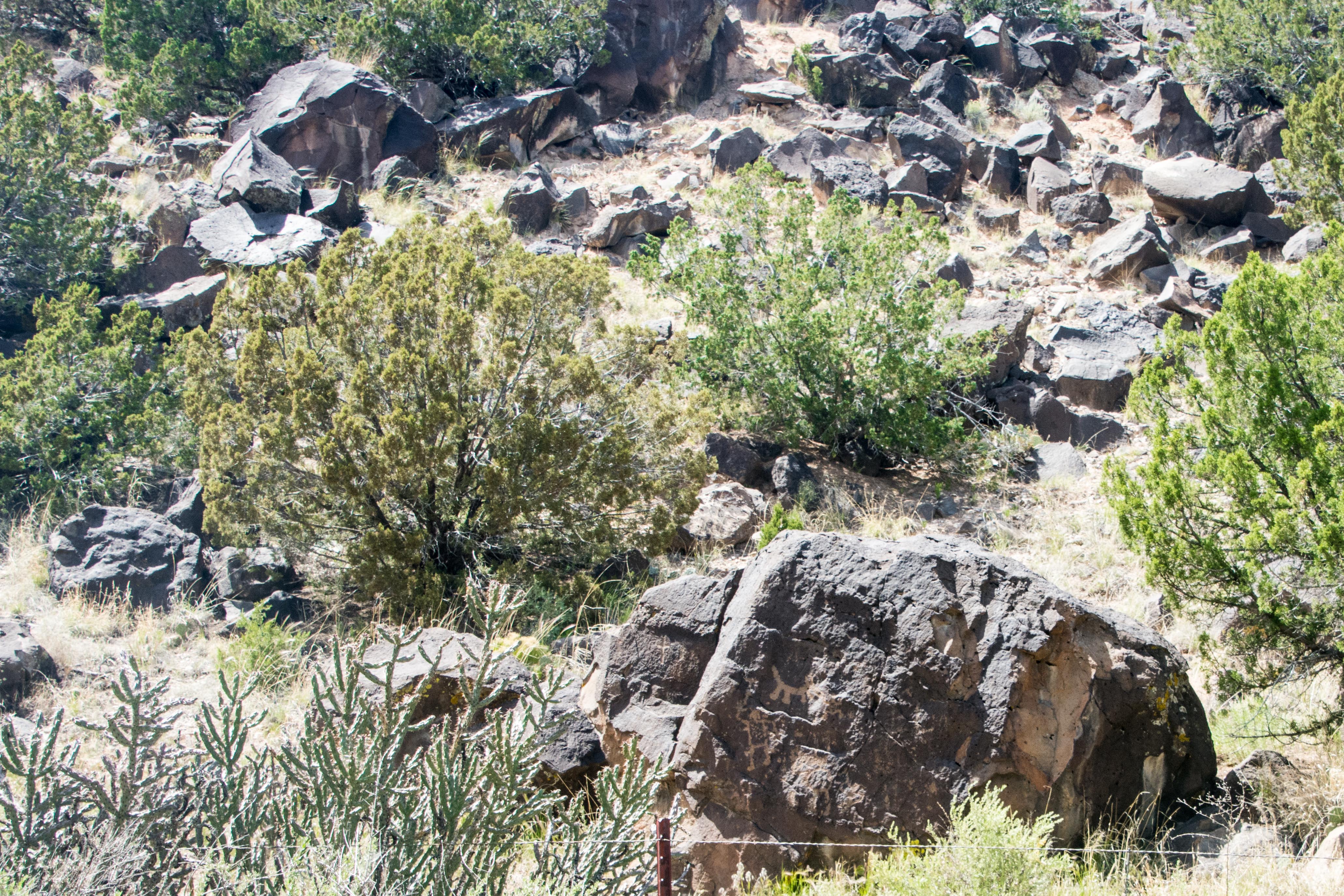 Falls coming down into the river. Note also the number of trees in the water